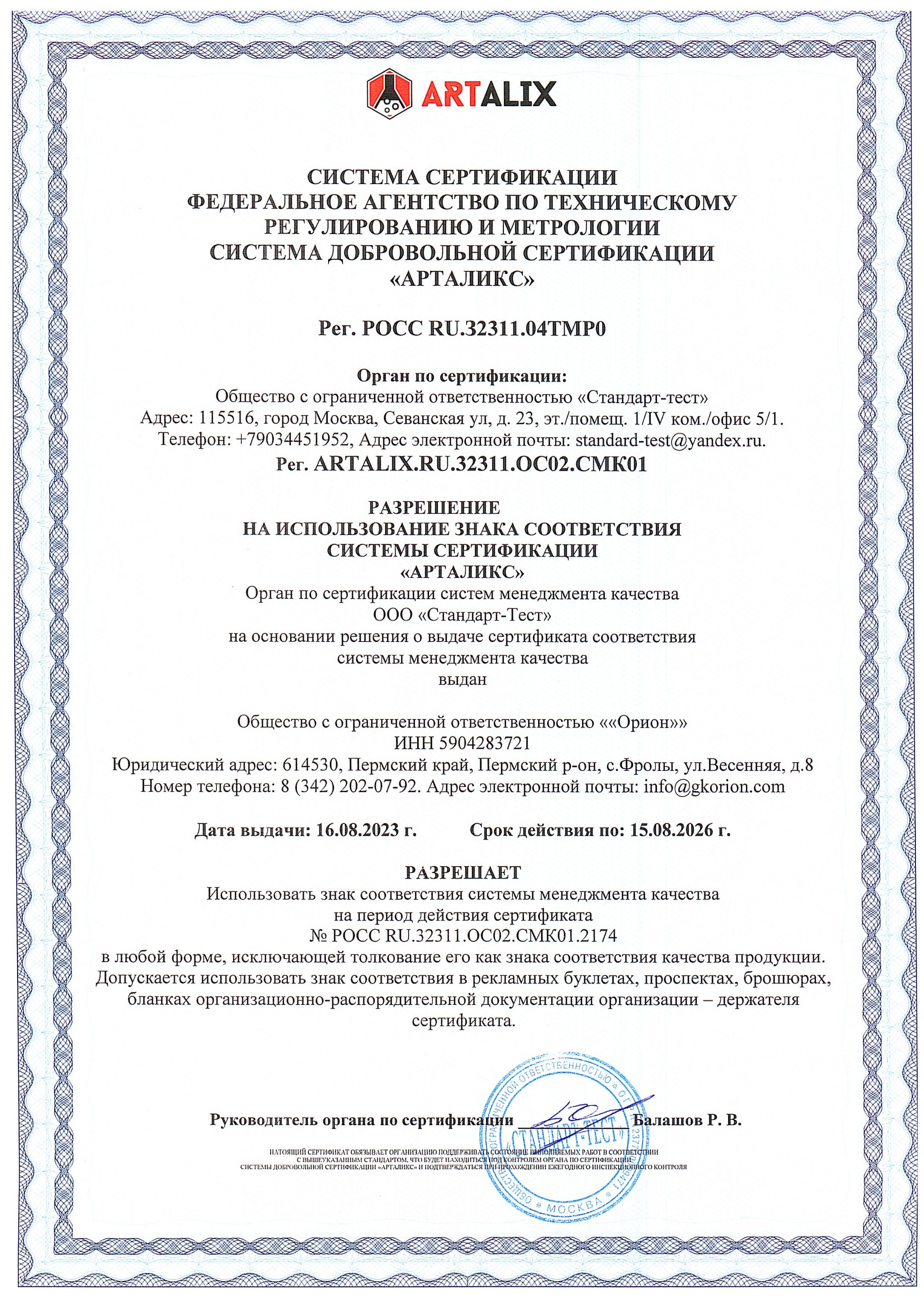 Действительны только с синей печатью с заверением генерального директора ООО “Орион”